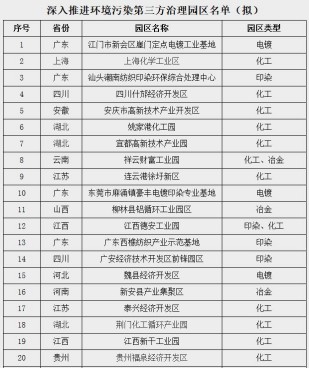 关于深入推进环境污染第三方治理园区名单的公示